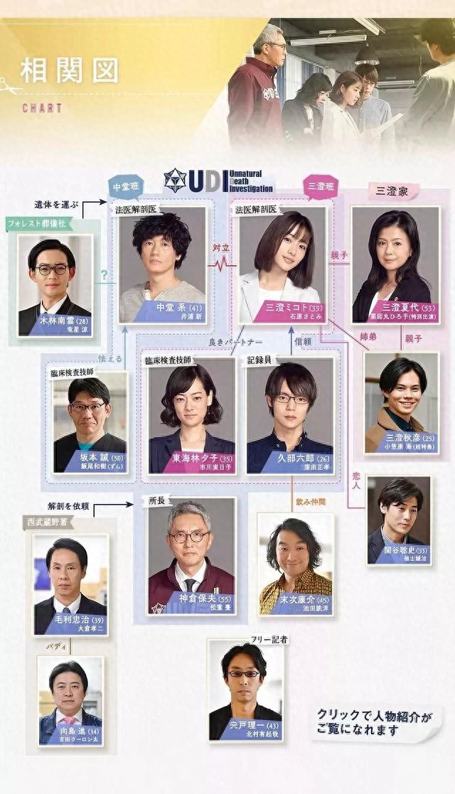 于是在UDI里工作的各位自然而然地串联起整个剧情。与其他职业剧人设不同,他们没有自带光环,而是被设计成一群拥有各种“毛病”的普通人。虽然从事着特殊的法医行业,但不完美的人设,让人觉得,脱下白大褂这些人和我们的内心OS差不多。先来了解下《Unnatural》中的人物关系图。