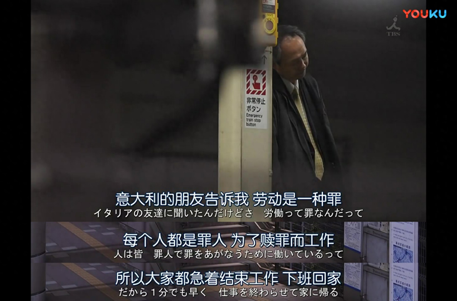 日本的过劳死早已不是什么热门的社会话题。以耗损生命的代价去努力工作真的是我们希望看到的未来吗?或许女主意大利朋友说的才是更多人的心声吧:劳动是一种罪,每个人都是罪人,为了赎罪而工作,所以大家都急着结束工作,下班回家。