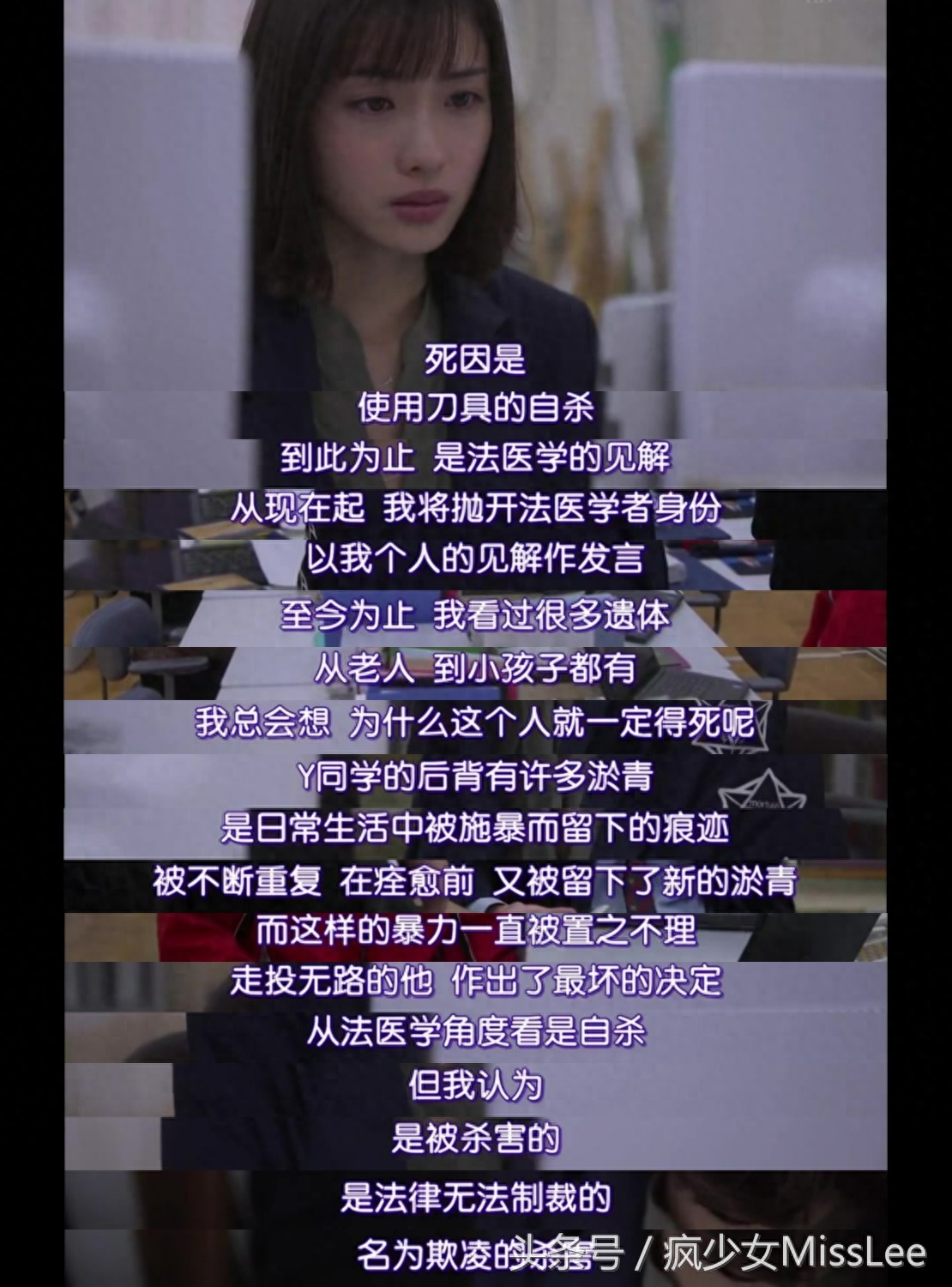 作为一个男权社会,职场中的女性歧视现象想必不止存在于法医行业和日本。那种对女性赤裸裸的蔑视和在法庭上利用性别弱点的攻击,简直让女人们憋出内伤。不光是检察官,就连被告都不忘记补刀。