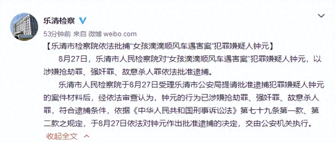 当天钟元又对一名女乘客见色起意,便将对方拉到僻静地带奸杀之后,还抢走了女孩身上的财物。