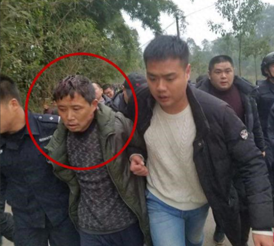 附近搜寻冯学华的村民本来就多,听见这边的动静,都匆匆赶来,多人一路追赶围堵,合力把冯学华的刀打掉,把他按在地上,等警察赶到的时候,冯学华已经成功被制止了。