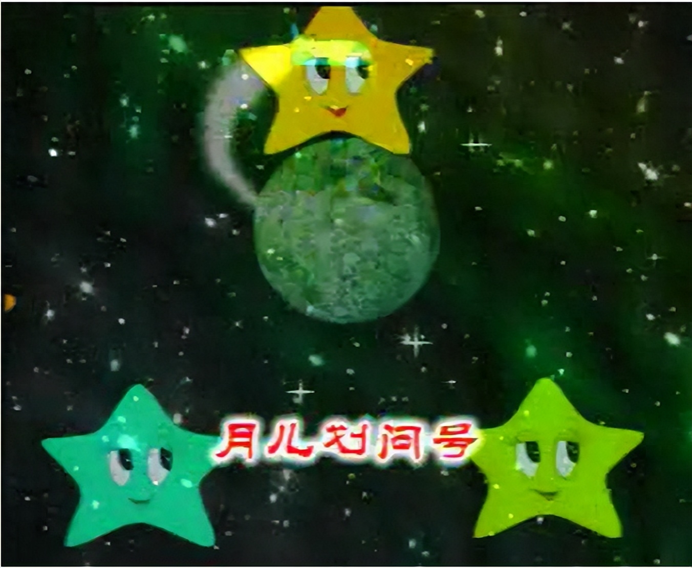 “星星眨着眼月儿画问号,彗星拖着长长的尾巴彩虹来架桥”