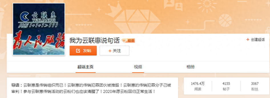 微博上还有个“我为云联惠说句话”的超话,目前其粉丝数超3000人,阅读高达1400万。从最初一味偏袒云联惠,盲目相信“云联惠会重新开始”等言论,到现在,直销邦再次查看其导语以及相关帖子,发现大多数人对“云联惠是传销”这个事实已经深信不疑了。