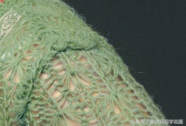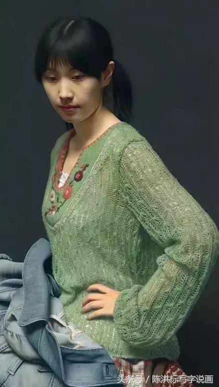 所以这也是那篇文章的主要内容之一。即关于冷军的肖像画有没有灵性,有没有艺术性。关于这个问题很简单,判断冷军画的肖像,有没有灵性,就看人物的脸部的表情,尤其看眼睛。比如下面这幅作品,眼神都能让人感受到对方的呼吸和沉思,毛线衣镂空的层次感和立体感等细节,就足够说明问题了。