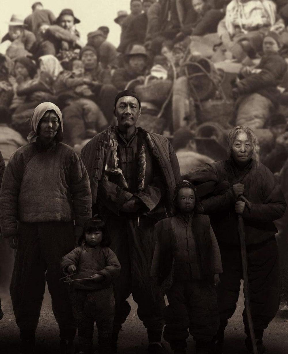 一夜之间家境殷厚,不愁温饱的地主沦为家破人亡的处境。和其他灾民涌入逃难大军之中。可想而知当时的社会环境有多么的恶劣,大灾当头,人人都可能是一把武器,为了干瘪的肚子,人与人之间相互觊觎,两季粮食颗粒无收,别说粗茶粗粮,就连道路两旁的树木都被灾民剥下树皮。