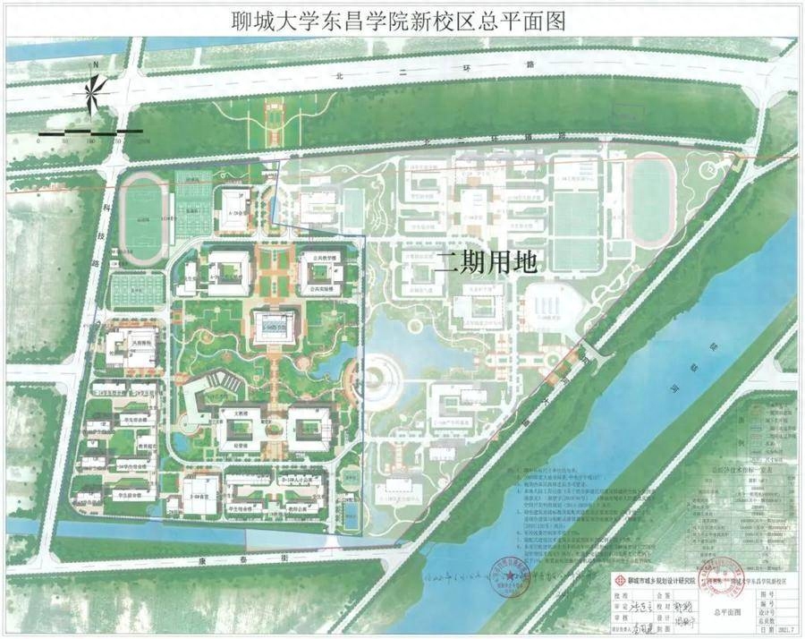 聊城大学东昌学院新校区,位于徒骇河西,北二环路南,总占地面积约1020亩。目前正在建设的一期工程,总建筑面积为33.3万平方米。一期主要建设教学设施、图书馆、学生宿舍、食堂,配套建设人防工程等设施。