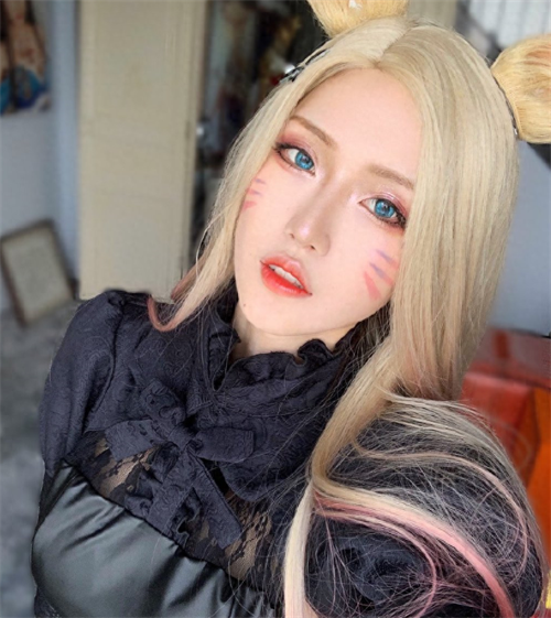 其中K/DA阿狸最为动人,可爱的毛茸茸耳朵加上淡淡的脸部花纹妆容,再配上一身黑色蕾丝上衣和皮裙子,有一种莫名的魅力。腐团儿COS的阿狸既有属于腐团儿的性感,也有角色本身的魅力,真是COS什么都好看。