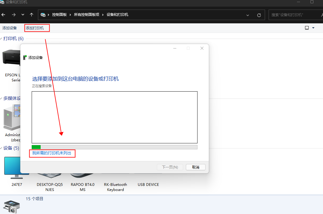 添加打印机 > 选择我所需要的打印机未在列表