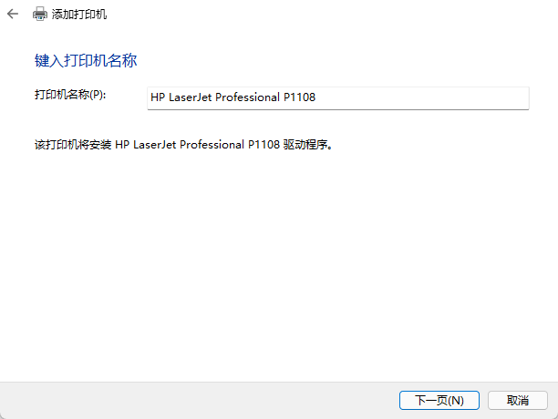 输入你需要安装的打印机型号 比如 P1108