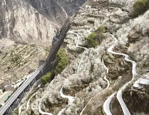非常有气势,沿着河谷呈阶梯状开放,就好像一幅油画一般。来这里看樱花一定要爬到最高点,俯瞰岷江河谷,万亩樱花在你眼前盛开,蔚为壮观。