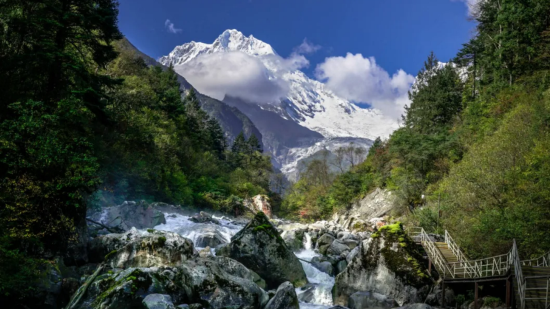 褪去了白雪皑皑的覆盖,海螺沟就好像一座天然的大氧吧,绿树丛生,百花绽放