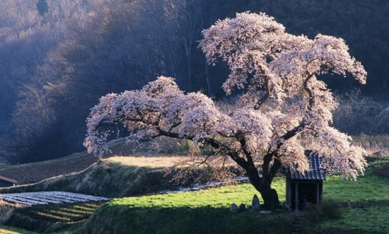 这里的樱花生长在河谷之间,