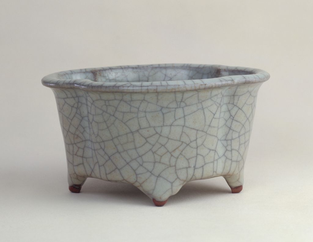 哥窑青釉海棠式花盆(图自故宫博物院)