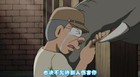 这一集叫《大象与叔叔》,因为每一位大叔都和大象花夫之间有着故事;无论是四郎叔叔的念念不忘,还是饲养员大叔的自始自终陪伴大象,甚至是片尾的反派兵队队长的坦诚告白,亦或是大雄和哆啦A梦不顾一切的救下大象,种种细节都能看出作者希望人类和动物之间能和睦相处,不愿意看到更多无辜的生物因为战争而死的心愿。