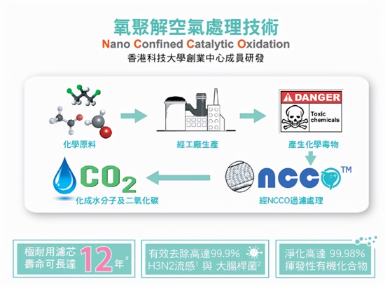 氧聚解反应层能够即刻捕获与吸附家装污染气体,通过机内活氧发生器释放活氧,在NCCO的纳米环境下,通过几毫秒的催化便可将有害气体分解为二氧化碳和水;