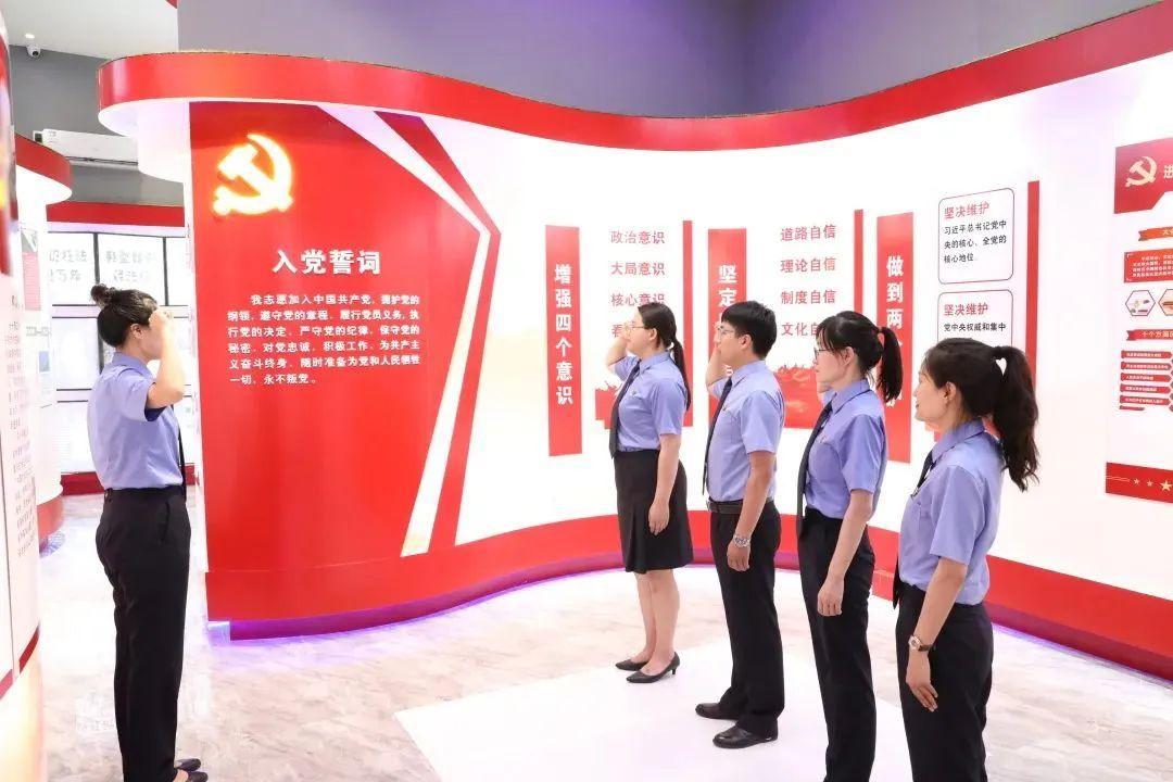 “我志愿加入中国共产党,拥护党的纲领,遵守党的章程,履行党员义务······”。新党员举起右拳,在领誓人的带领下面对党旗,庄严宣誓,老党员观礼重温入党誓词,现场气氛庄严而热烈,党员们胸前的党徽熠熠生辉。宣誓完毕后,党员们又参观了党建教育基地,激励全体党员不忘初心、牢记使命、踔厉奋发、笃行不怠。