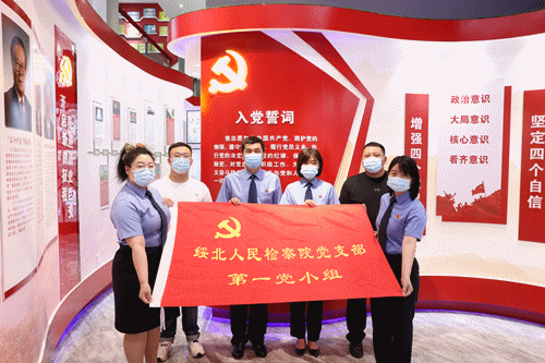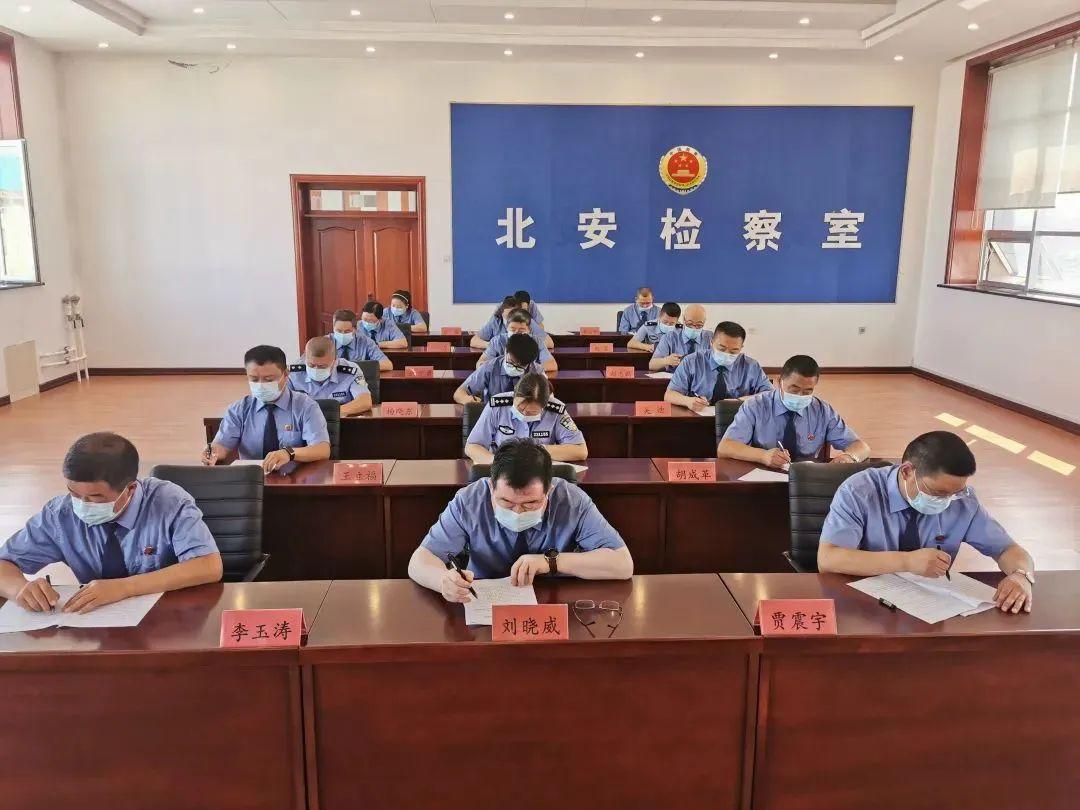除绥北院院机关在“七一”来临之际,以“凝心向党、共庆七一”为主题组织开展了系列主题党日活动外,北安检察室(绥北院党支部第六党小组)开展了迎七一“瞻仰英雄纪念碑、祭扫英雄墓”主题党日活动;绥北院司法警察大队组织绥北院机关、北安检察室两地法警联合开展了“庆七一传承红色精神”主题党日活动。