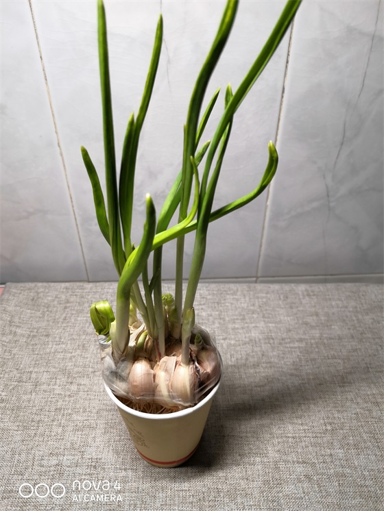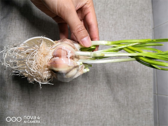 这里教大家一个小妙招——把发绿芽的蒜头种成翠绿的蒜苗。