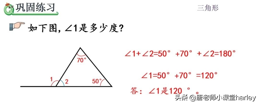 (8)已知∠1、∠2、∠3是三角形中的三个内角,其中∠1=70°,∠2=35°,那么∠3=()。