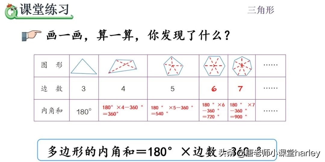 多边形内角和公式推理(四年级数学|探索多边形内角和探究与总结,培养孩子实践归纳能力)