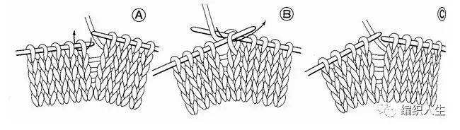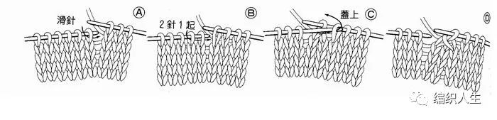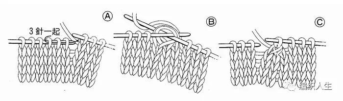 个字:代表三针并1针,中间一针在上面。