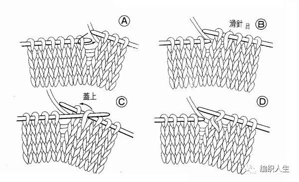 寄针 (其实就是低针, 只不过织完后会自行靠左)