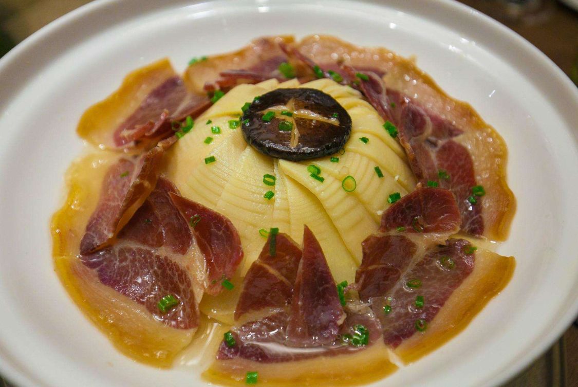 安徽独特的地理位置为徽菜提供了丰富的食材,其中这问政山笋是徽州山珍之一,因产于问政山而得名。传统的做法中,一般都用腊肉搭配问政山笋,其拥有竹笋的鲜嫩,但吃起来不够香,而中心点缀上朵朵香菇、笋片与腊肉镶嵌弥补了竹笋的不足,吃起来汤汁鲜美、笋肉脆嫩,令人赞不绝口。