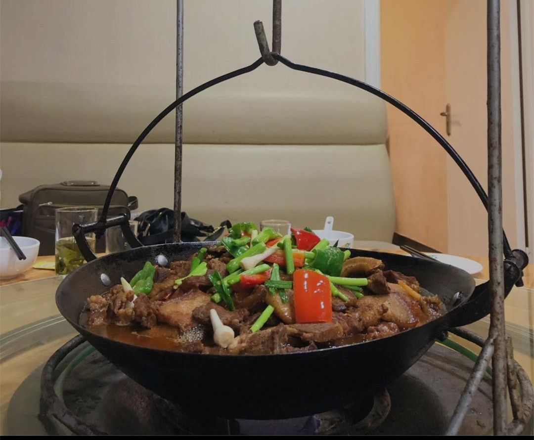 金寨吊锅其实就是金寨地区农家的一种烹饪方式,在屋梁上悬着木质的滑竿,吊着一口大锅,在大锅下面有个火塘,吃饭的时候将多种烧熟的菜倒入锅中,一家人围坐在火笼四周,吃饭、烤火、聊天,颇有一种江湖气息。