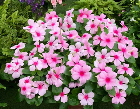 天天开也就是我们所说的长春花,它花期非常的长,一年四季都能够开花,它是属于草本植物,我们在夏季的时候也要保证着充足的光照,保证盆土不缺少水分,在高温的情况下它也能够正常的生长,而且它长的同时不断的开花,一棵养大了能够开出上千朵花来,所以它价格便宜好养,是比较适合在夏季养的一种开花植物。