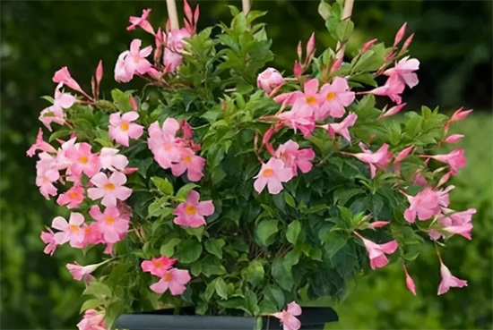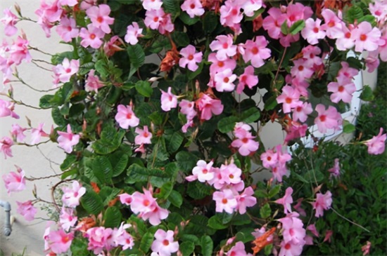 飘香藤它是属于一种藤本植物,长势非常的快速,我们在家中养的话,可以选择自己喜欢的颜色去养上几棵,种到一个稍微大一点的花盆里,不要用太深的,平常浇水盆土干到一半左右再去给它浇水,肥料的话,也是要选择高磷的,这样再去给他见充足光照的话,他藤条不断地长不断地往外冒花,开出来的花一个一个像喇叭一样,非常的美。