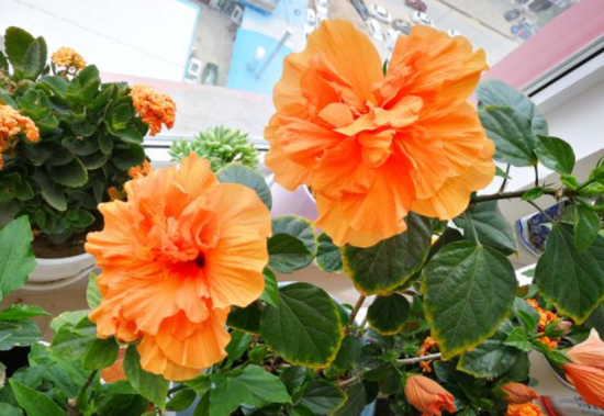 扶桑花也叫做朱槿,它开花有的品种开得非常的大,能够开20多公分的直径,而且它的花色非常的多,它也是一种典型的喜高温的植物,在夏季的时候,我们保证环境的通风度,保证土壤不缺少水分,直接把他扔到太阳底下去,他就能够不断的长,不断的开花。它也是一种四季开花的植物,我们一定要保证温度在15度以上,就能够让它全年开花,而且要记住,定期一个月浇灌一次硫酸亚铁,否则叶片会发黄。