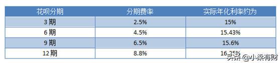 大致估算,花呗分期实际年化率在15%-16.25%之间。