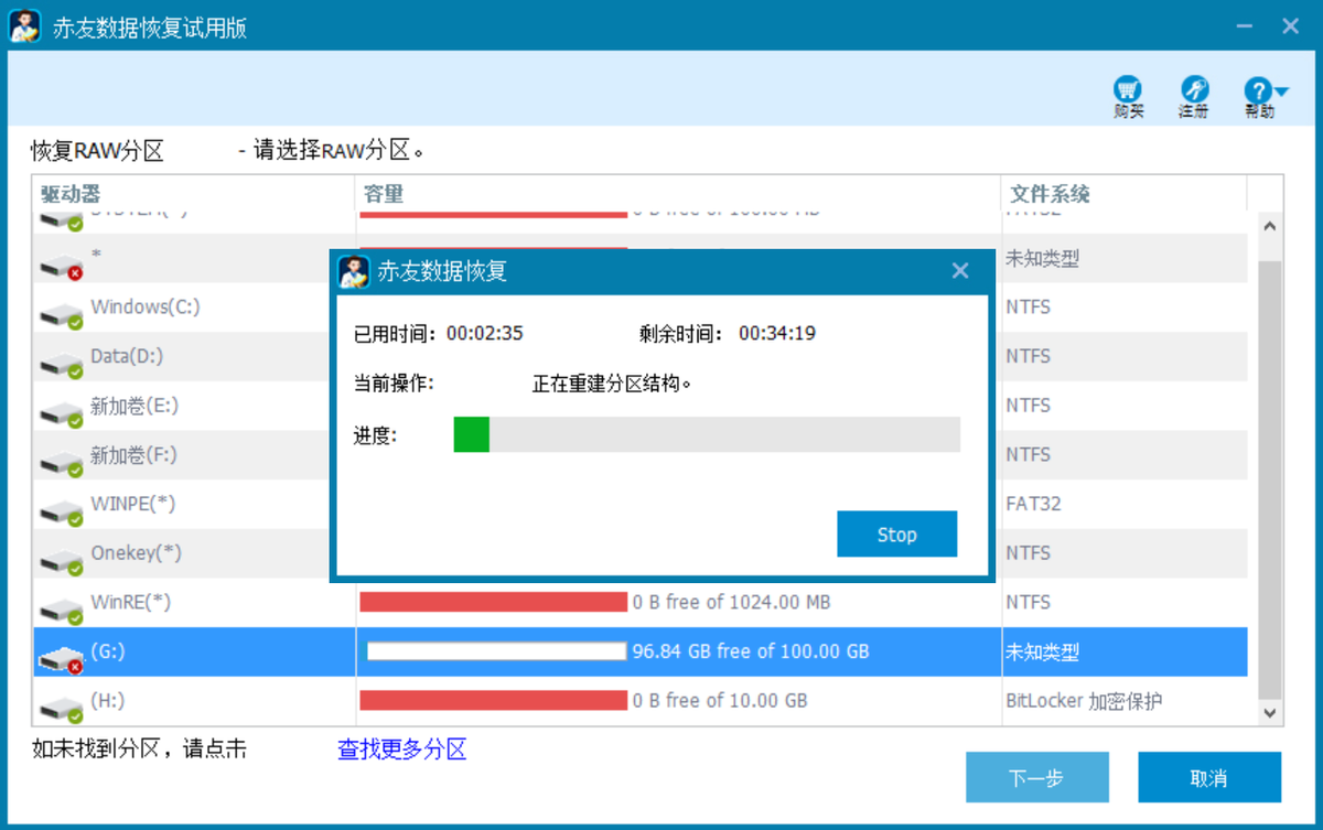 注:恢复RAW分区