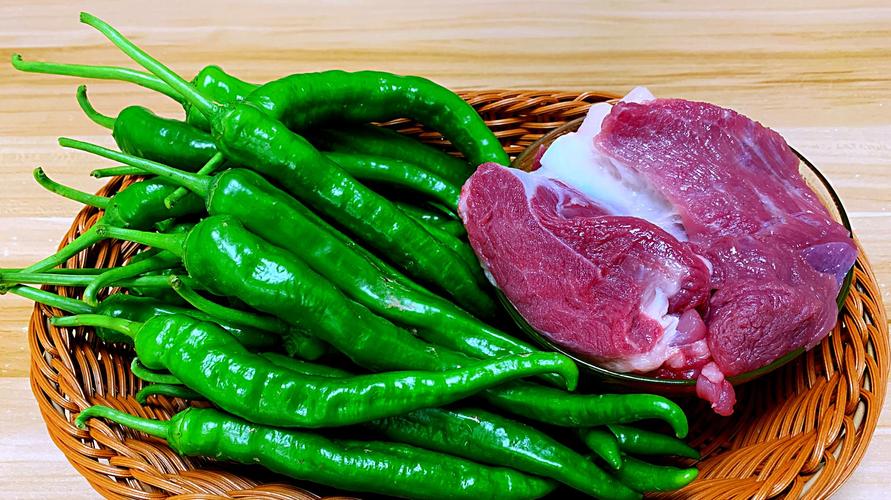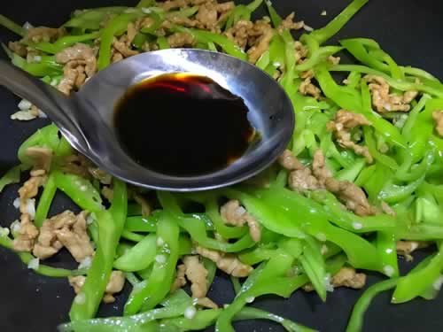 准备食材:尖椒、猪里脊肉、葱姜、料酒、生抽、老抽、食用油。