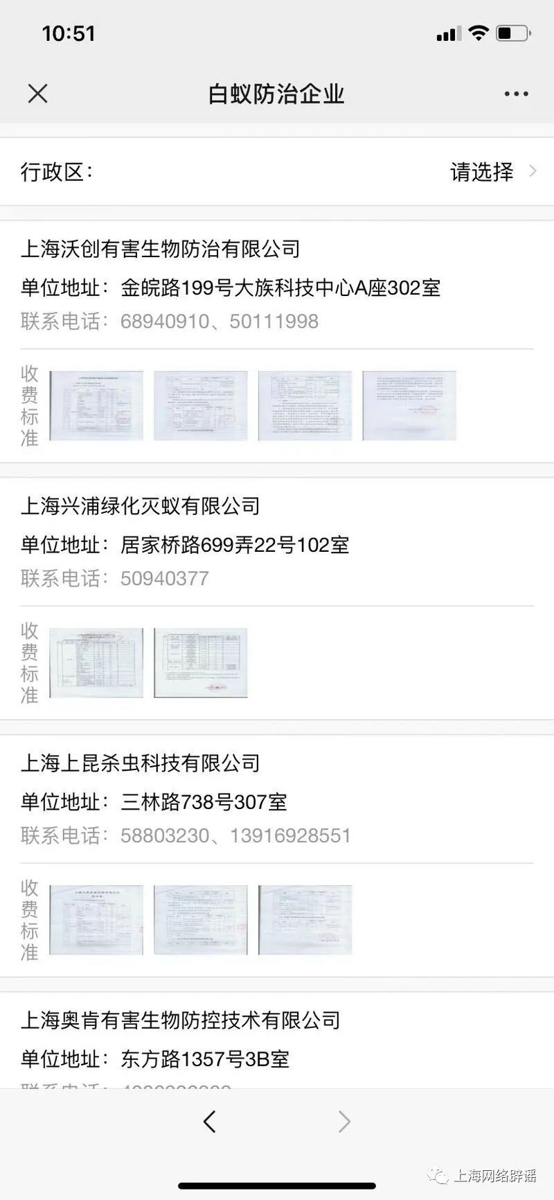 目前,全市54家防治企业的收费标准已经公示,居民可根据需要在“随申办”“上海住宅物业网”“上海物业”公众号查询。