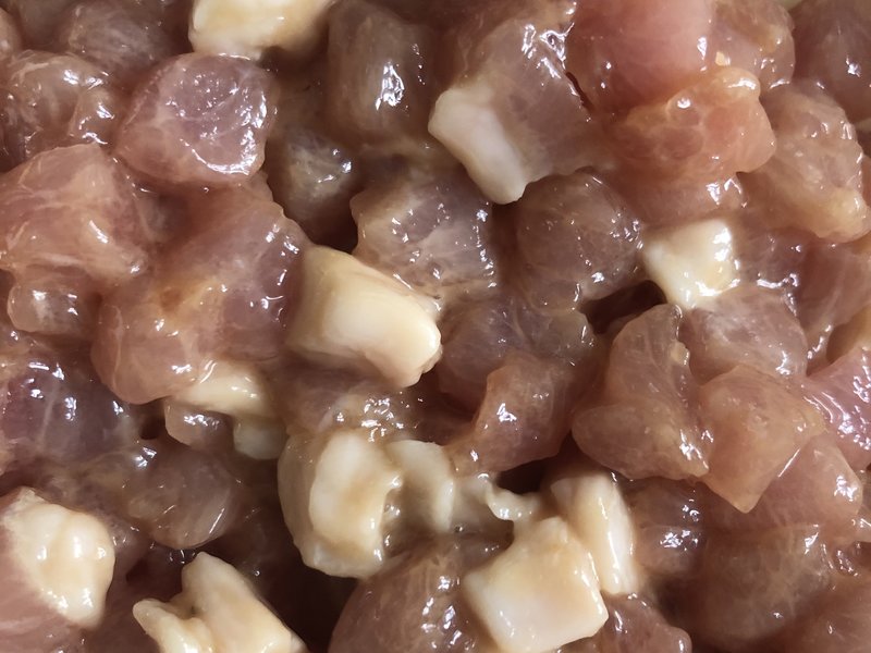 猪肉切成小方丁备用