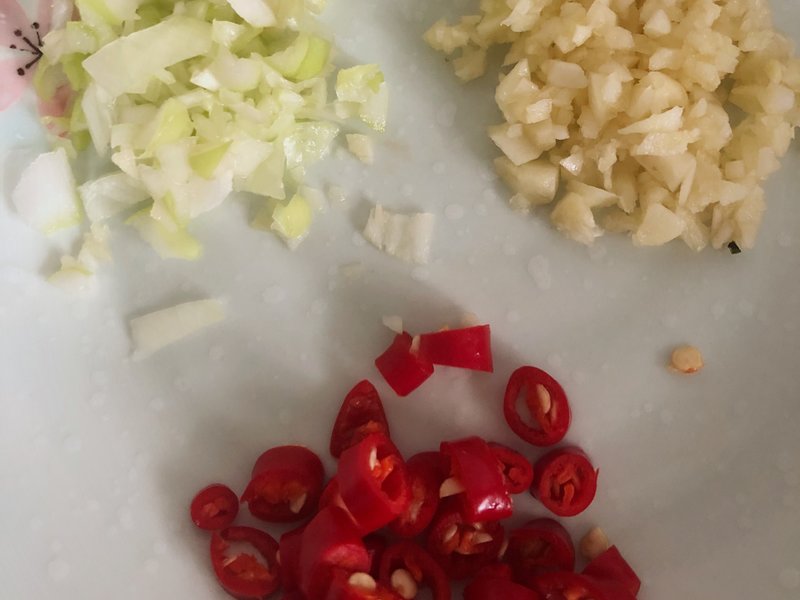 葱、蒜、小米辣切碎备用