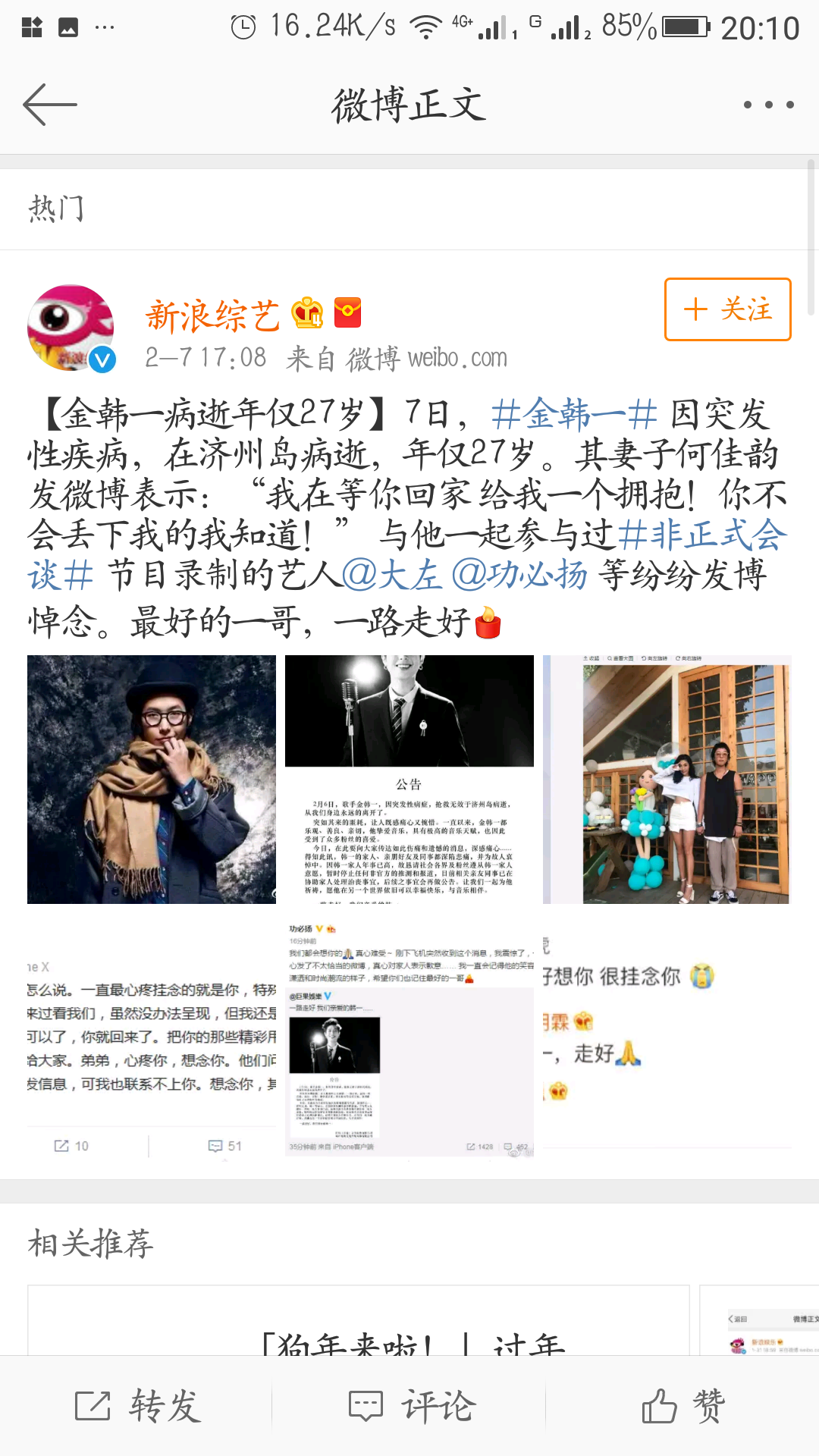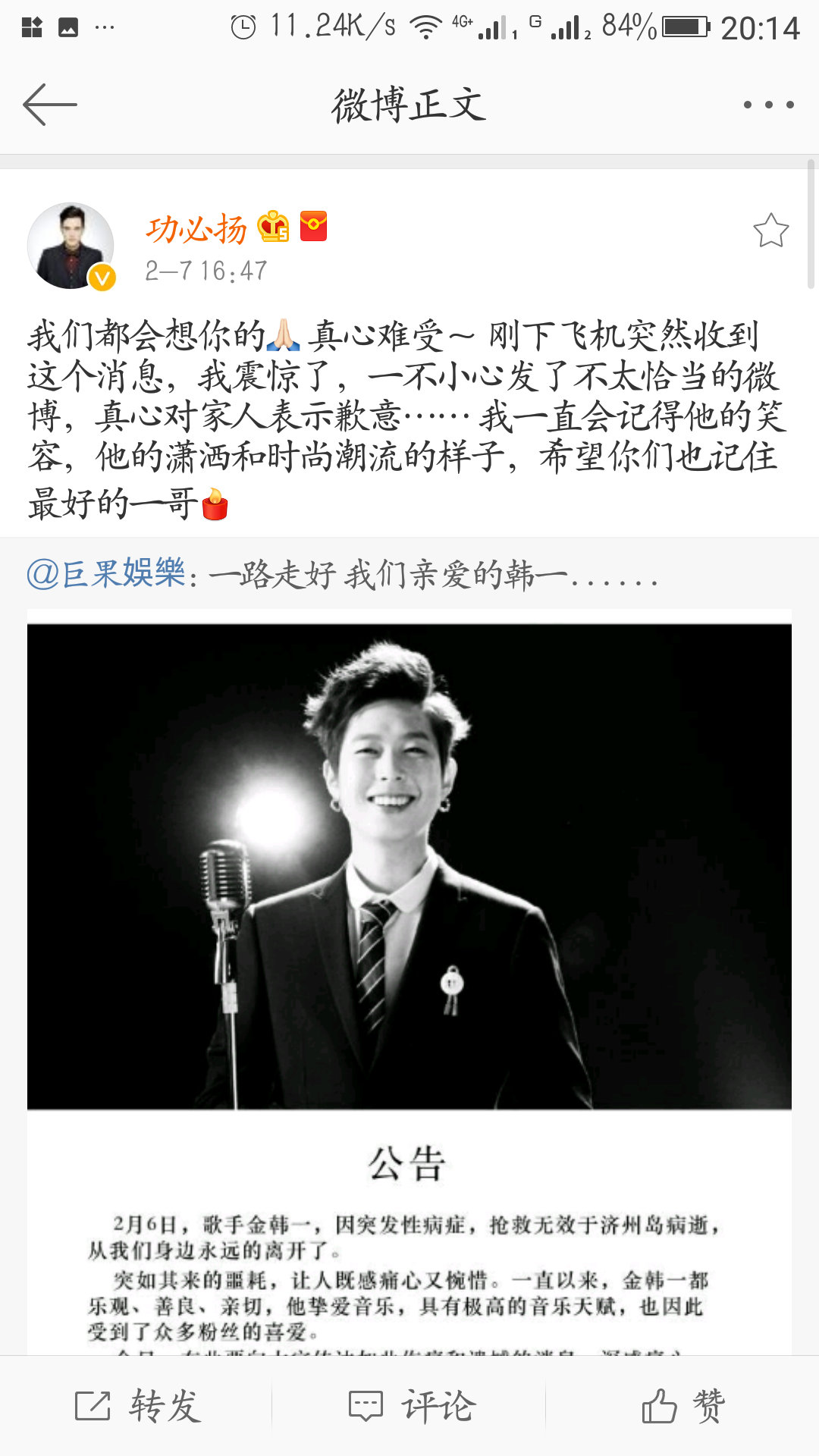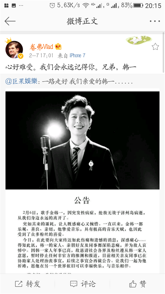 对于金韩一的去世,不仅非正的嘉宾朋友不愿相信,还有一些非正的金韩一的粉丝也表示听到这个消息泪奔