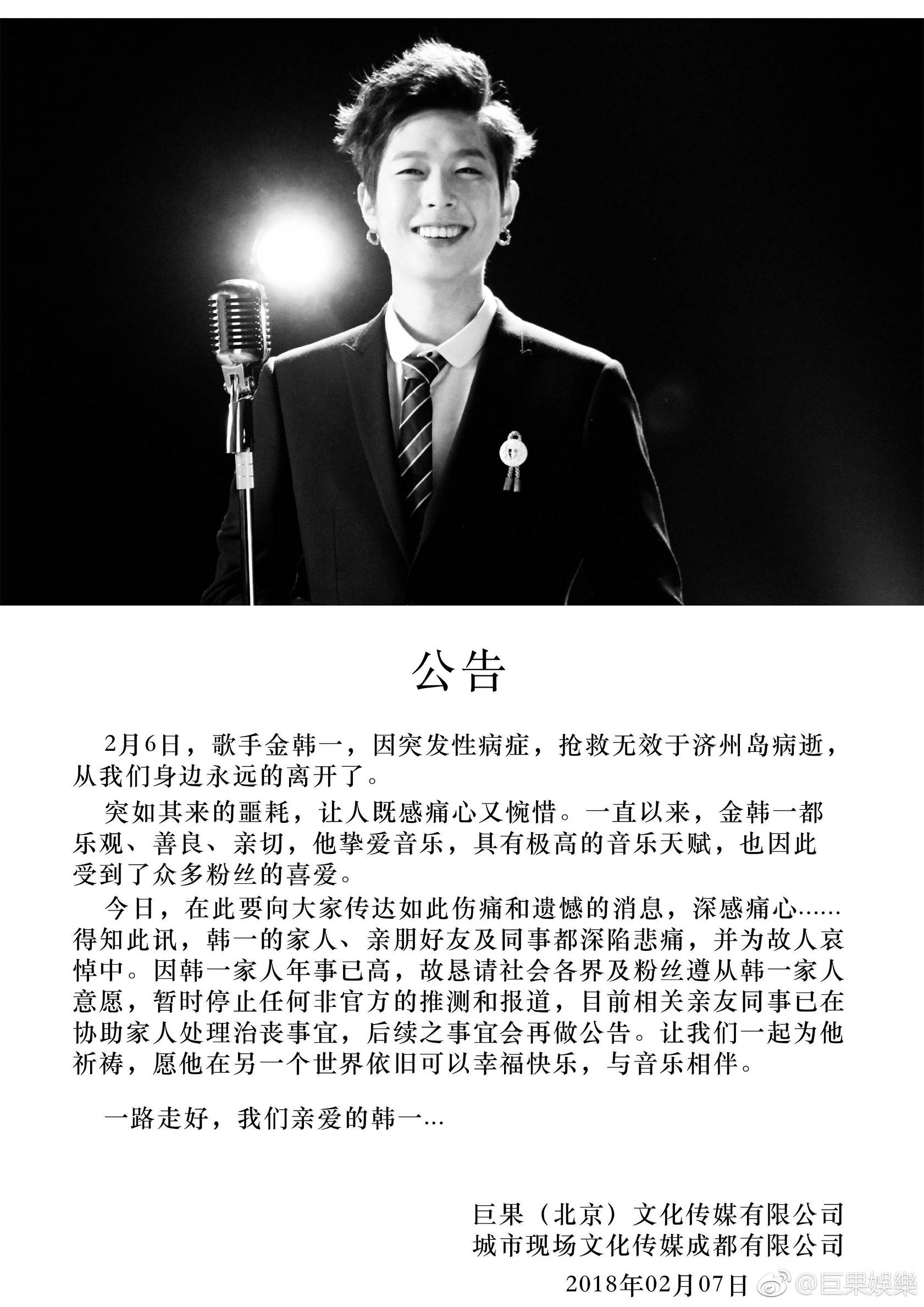 愿韩一在天堂安好