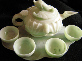 在市面上常称为巴玉或者阿富汗玉。硬度软,仅是3,如果是成品,在不显眼的地方,用小刀轻轻的刻划一下,就可以看到很明显的白印和粉末。也是粒状结构,虽然不那么容易看出来。手电透光打或者侧光打,仔细找着观察,可以看到明显的层状构造,像是千层饼的横截面。其实比较纯净的大理石手镯也很好看,价格也低,只要40、50元一只,只是太软,韧性也差,耐久性就没有了,容易碰断,没有办法长时间的佩戴。