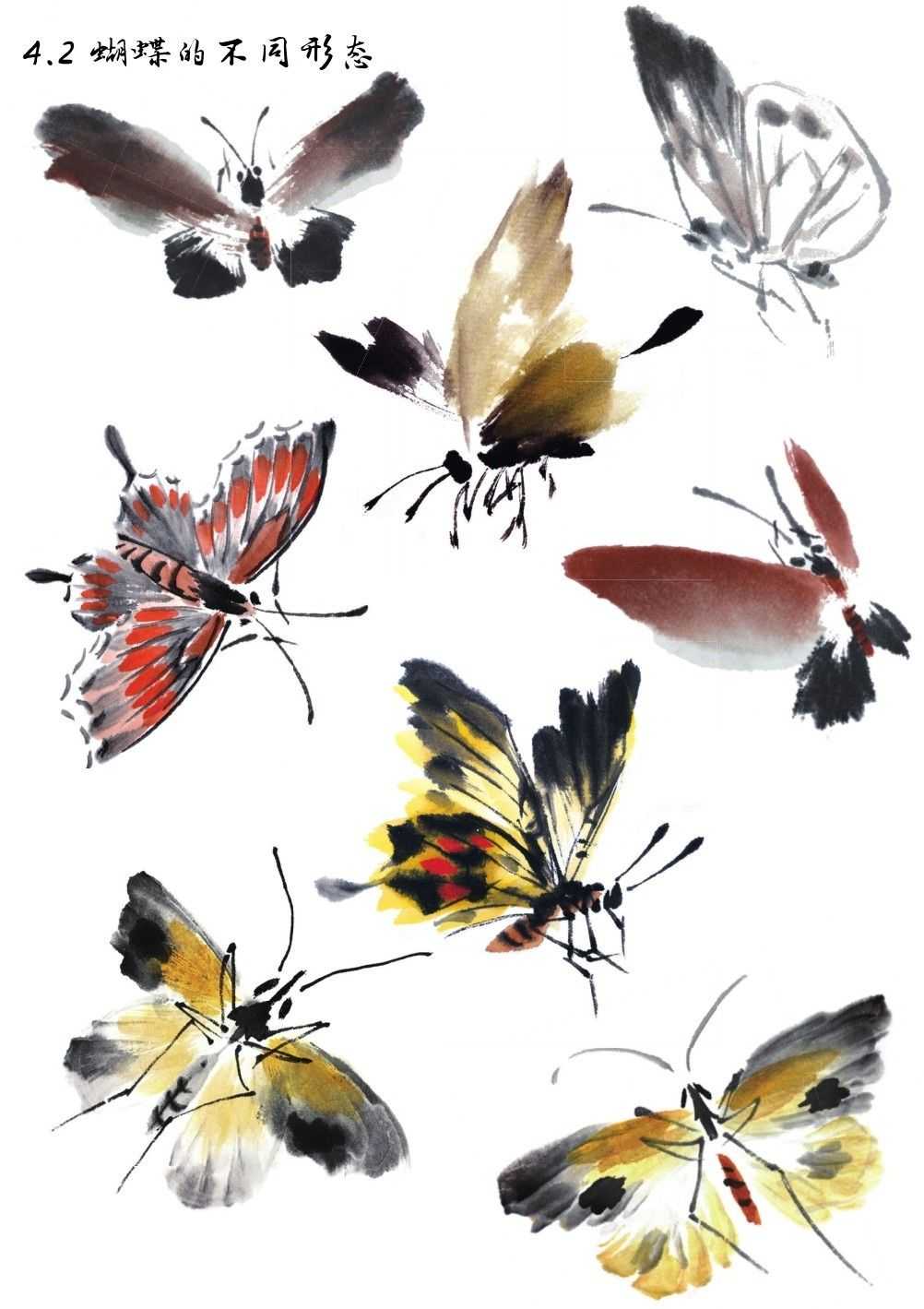 蝴蝶不同形态的画法
