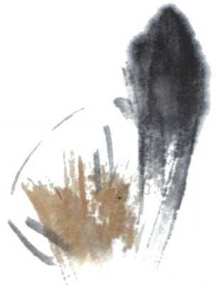 2 调和赭石与淡墨,勾画腹部,与头部虚接。
