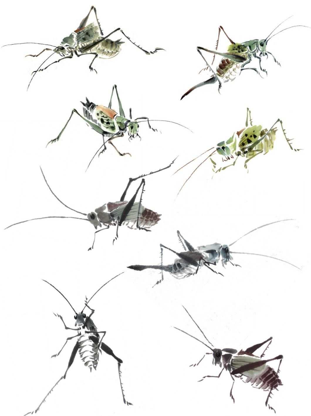 蝈蝈不同形态画法
