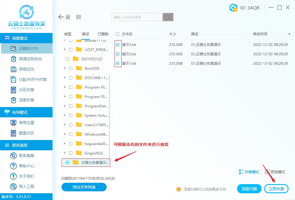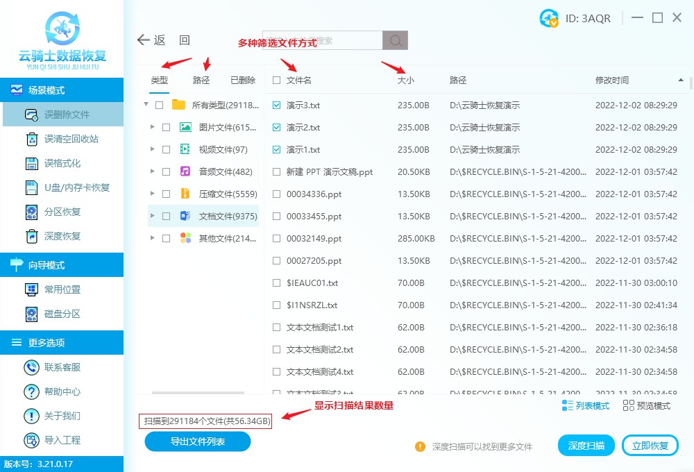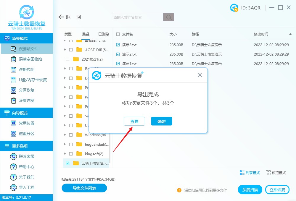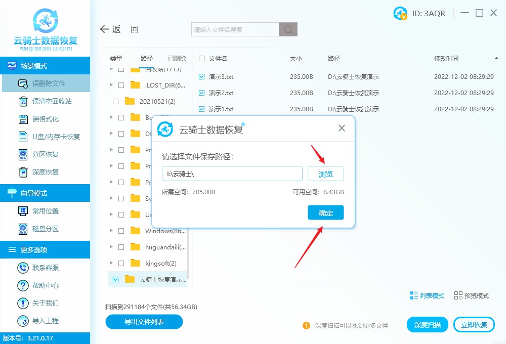 软件版本:云骑士数据恢复软件3.21.0.17