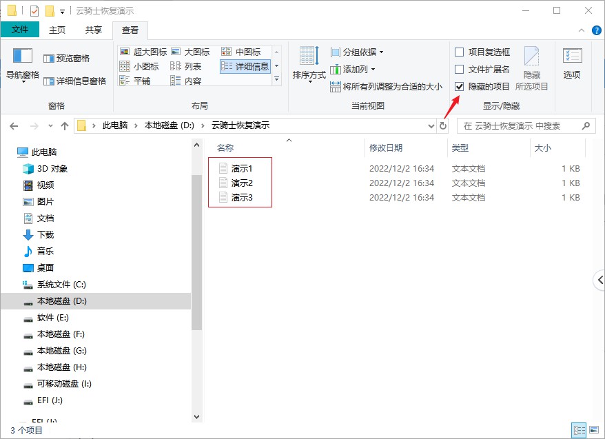 图示1:未勾选“隐藏的项目”前文件夹是无任何数据