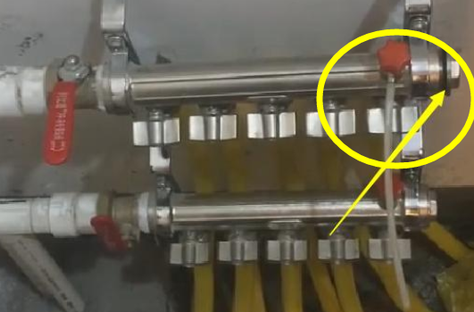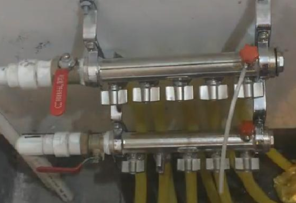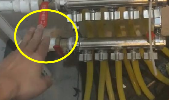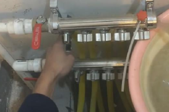 第三步:结束后,再重复第二步,关闭已放过水的一路管线,开启另一路,以此类推,直到热水进入地暖管内为止。