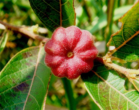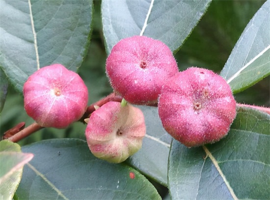 在算盘子的果实外皮上有很多细小的绒毛,像那种红南瓜一样,一瓣一瓣的,只不过是小很多罢了,迷你型的小南瓜,因此它还有个别名叫小南瓜,小吴在儿时,和父母去山上干活的时候,还拿它当做玩具玩过。