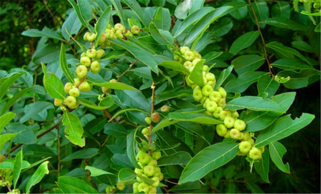 但是这种算盘子的果实有小毒,如果我们要把它用做药的话,一定要遵医嘱,不能私自用药,否则出了问题就麻烦了,农民还用它制作土农药,还可以提制栲胶,叶子还能做绿肥用,另外它还能作为酸性土壤的指示性植物。