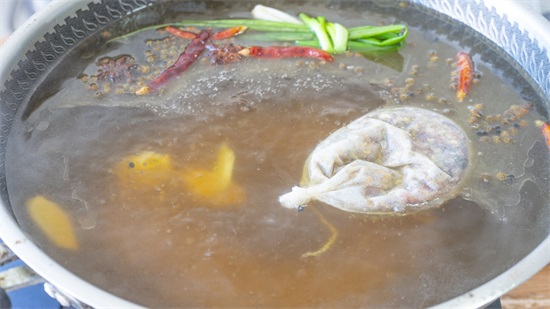 3、卤料包主要是增香提味儿的作用,家里没有的可以不加,用一些普通的大料就可以了。如八角、桂皮、香叶、花椒、干辣椒等,这些也都是可以的。