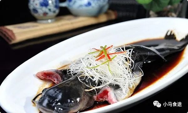 1. 在江团尾部脊背上斜斩一刀,约至江团尾的1/3深处,让血流尽,剖腹去内脏,挖腮,清洗。然后手提江团尾放入沸水锅内速烫一下,入冷水中用小刀将江团身上的粘液刮洗干净。